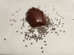 (Sucre, pâte de cacao, amande, noisette, beurre de cacao, blanc d'oeuf, pollen lécithine de soja, vanille)